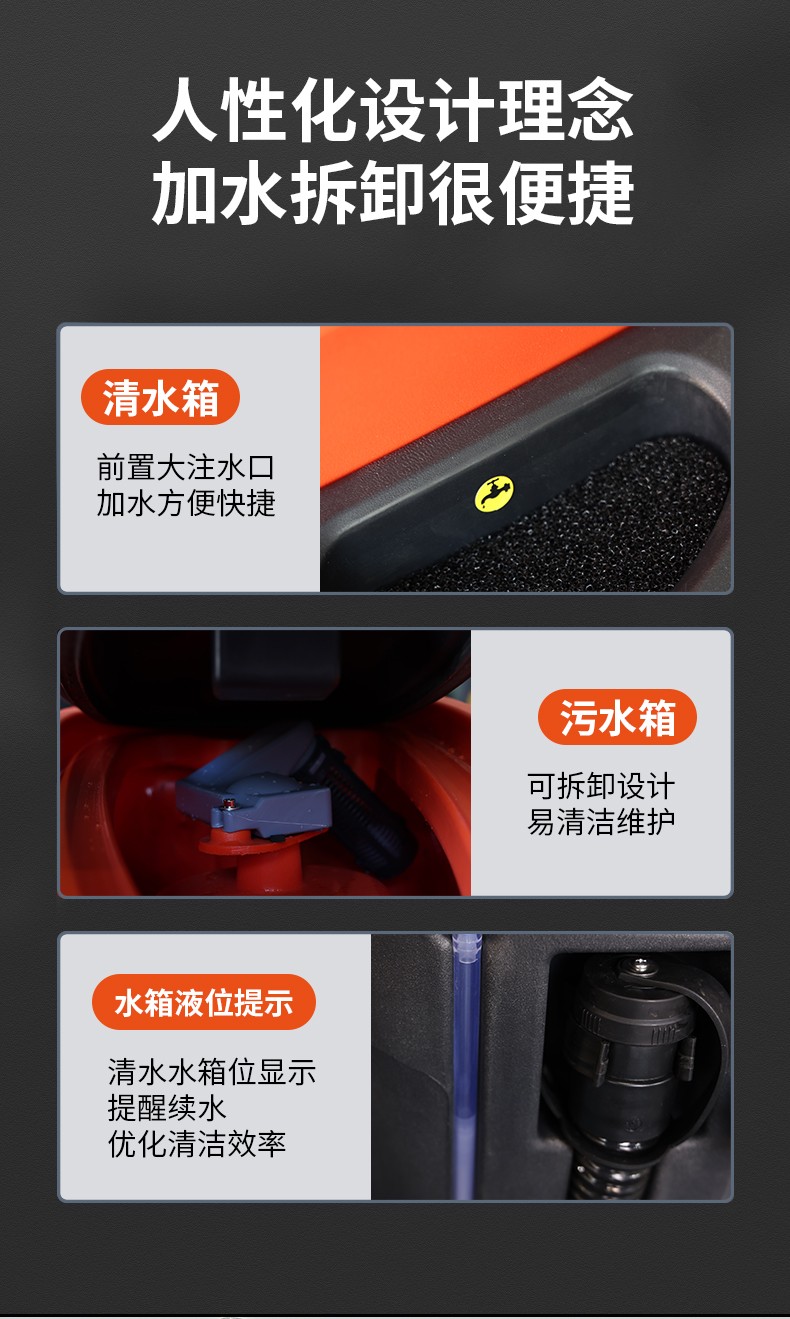 ● 污水箱大開口,可拆卸設(shè)計(jì),易清潔維護(hù)