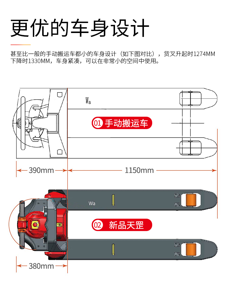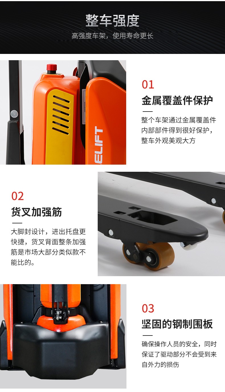 ● 貨叉采用腳封設(shè)計(jì),進(jìn)出托盤更快捷,同時(shí)提高了貨叉的強(qiáng)度,貨叉背面整條加強(qiáng)筋,讓整個(gè)車子貨叉強(qiáng)度大化。